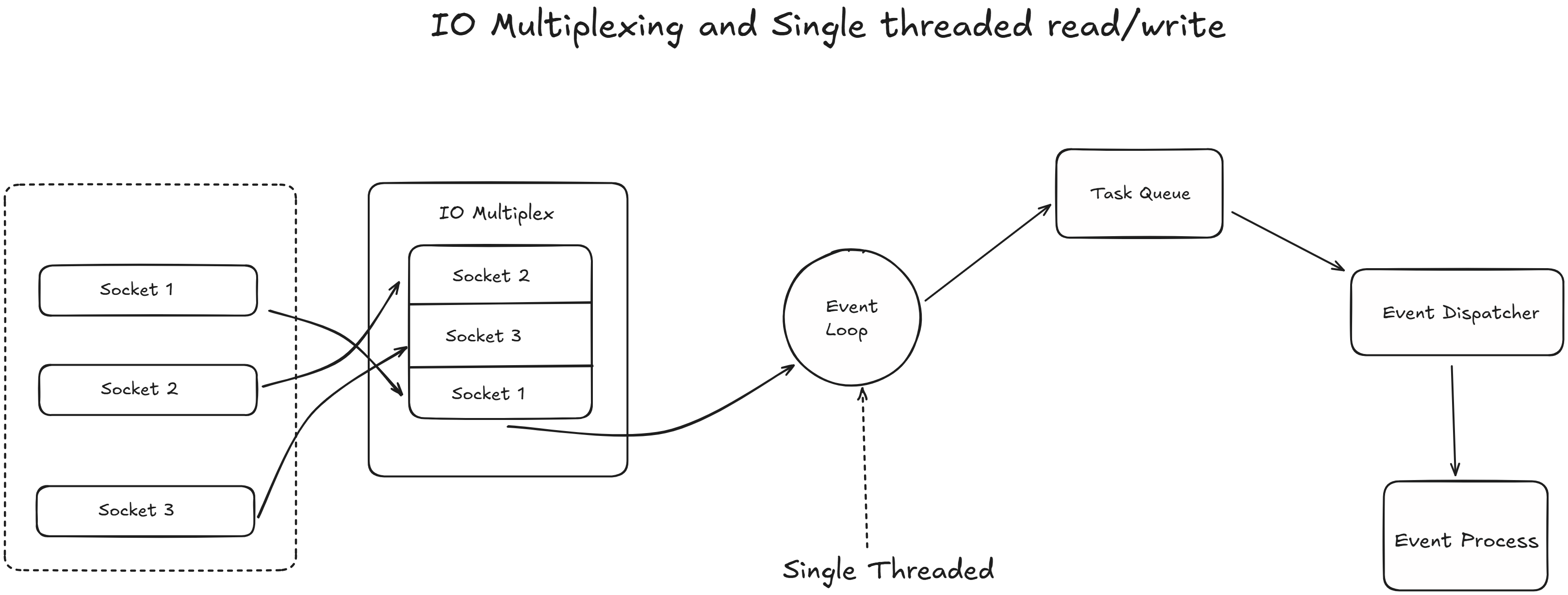 This non-blocking I/O model ensures the single thread is never idle waiting for network or disk operations. It is always busy processing events, which is how it achieves high throughput and concurrency with a single thread.